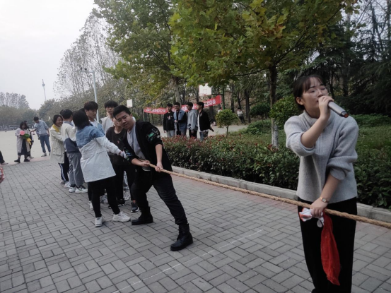 当天下午,21级全体同学结束本周学习安排,来到校内篮球场东面,一百三十多位同学共聚蓝天白云之下,携带者美好心情开启下面的活动。本次所有活动遵循着友谊第一,比赛第二,安全为上的主旨。
